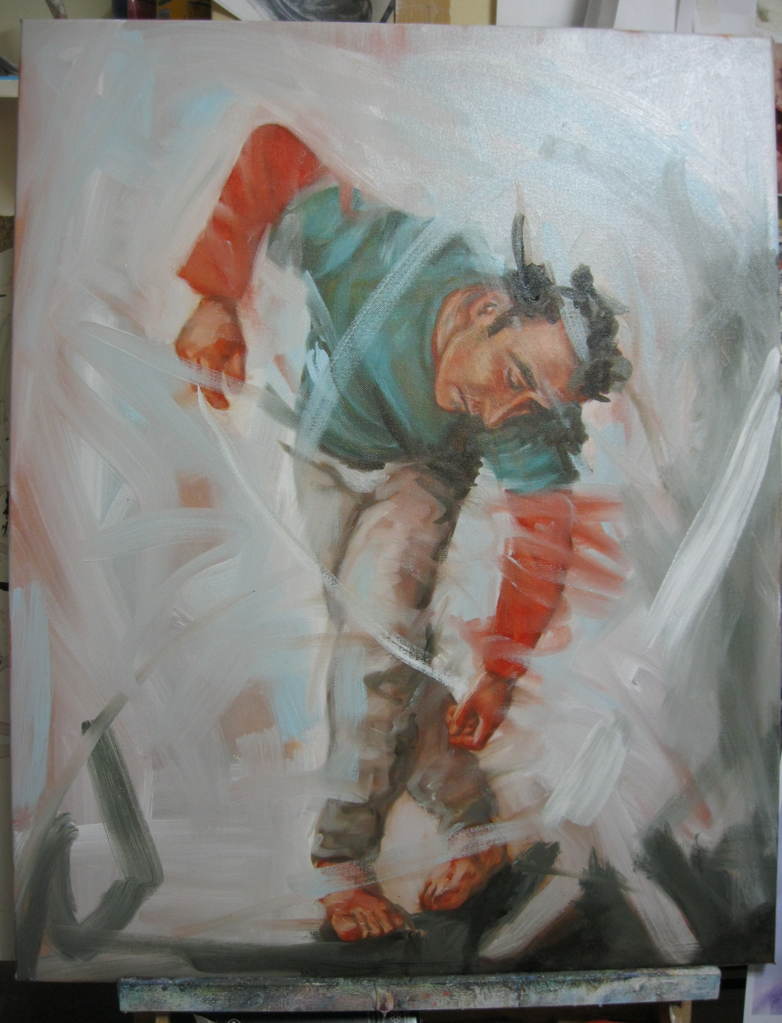 I like the pose. I can nearly feel the movement. Great painting!